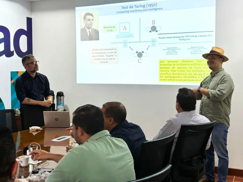 La aplicación y apropiación de la inteligencia artificial en las facultades y departamentos de la Javeriana Cali se ha convertido en una prioridad institucional, en respuesta a las nuevas demandas del entorno académico y del mercado. Gracias a este compromiso, la universidad ha logrado consolidar avances significativos y fortalecer su experiencia en el tema, conocimientos que en esta ocasión fueron compartidos con directivos y decanos miembros de la red, asegura el profesor Duque.