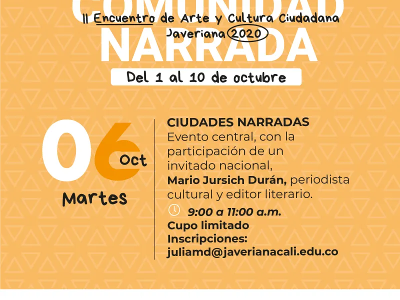 Durante las dos primeras semanas de octubre, se llevará a cabo el II Encuentro Universitario de Arte y Cultura Ciudadana Javeriana 2020 “Comunidades Narradas”. Será un espacio para generar reflexiones, socializar experiencias y compartir dinámicas alrededor del ejercicio de la ciudadanía desde las comunidades universitarias.