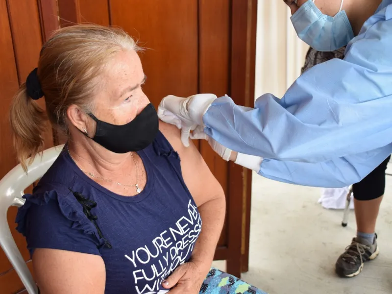 797 pacientes mayores de 65 años con régimen subsidiado y contributivo recibieron la vacuna contra el Covid-19 como parte del programa Vacunación sin Barreras, una alianza entre la Javeriana Cali, la ESE Ladera y la Secretaría de Salud Pública. Durante el viernes, sábado y domingo, habitantes de la comunidad caleña se acercaron para recibir la primera dosis.