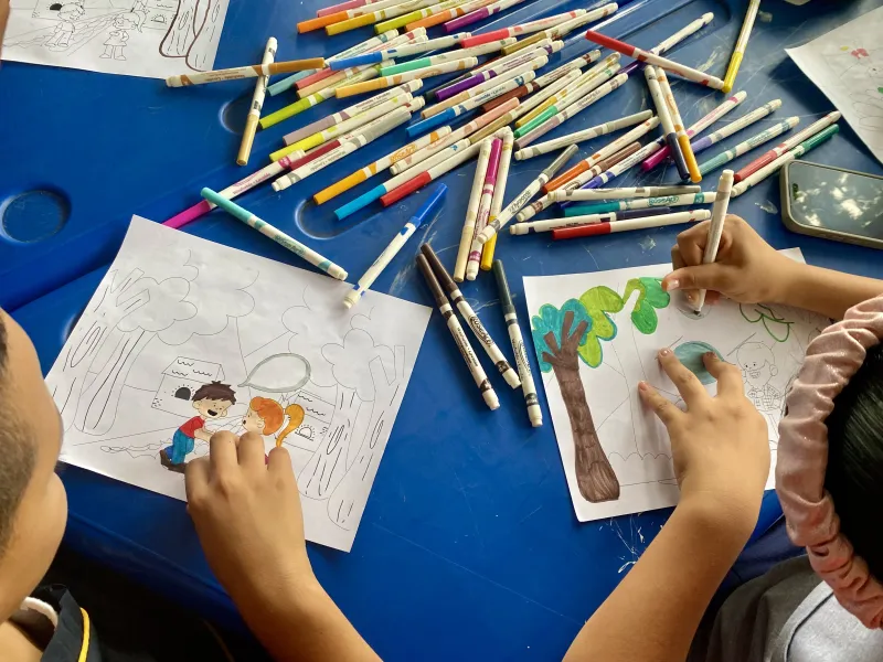 El propósito del proyecto fue crear productos gráficos que respondieran a las necesidades de la comunidad, y se desarrolló en dos fases. La primera consistió en un acercamiento inicial, durante el cual se realizó un mapeo general y un diagnóstico de las posibles problemáticas a trabajar. En esta etapa, los estudiantes del curso debían liderar un taller creativo y artístico con los niños para extraer los insumos necesarios con los cuales diseñar los productos gráficos finales. “Aquí, el coordinador del colegio nos aclara que estos niños no habían vivido nada parecido antes, entonces fue una oportunidad única para nuestros javerianos, que se convirtieron en facilitadores de dicha experiencia, donde le dieron rienda suelta a su proceso creativo”, aclara el profesor Fernando.
